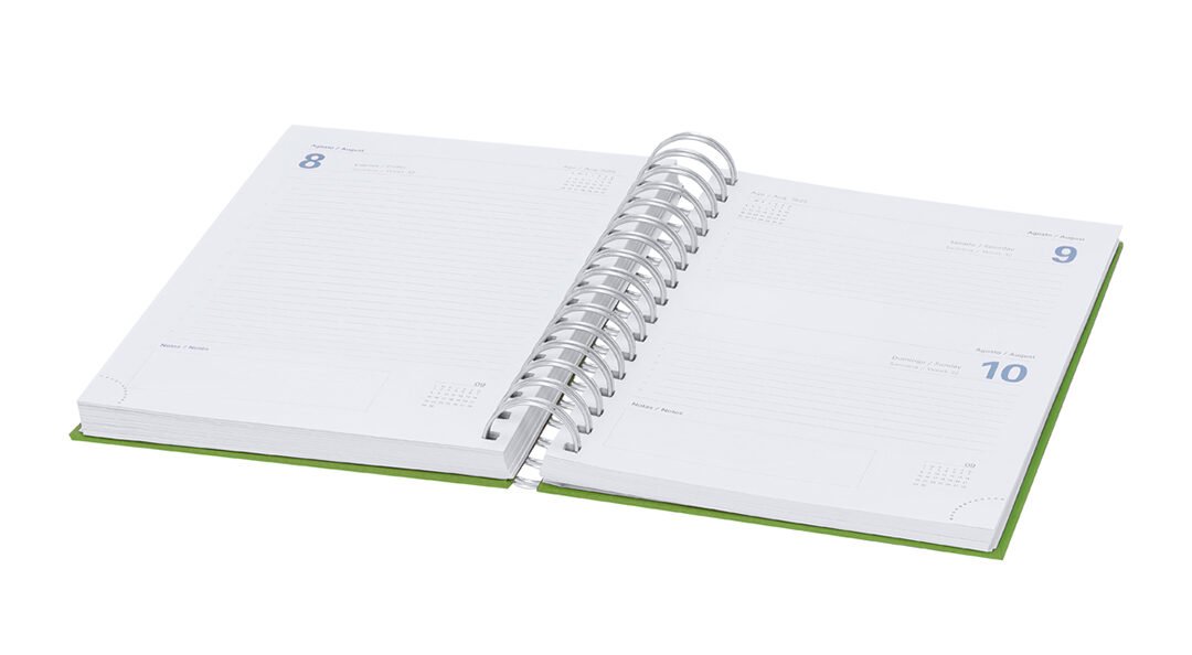 - Tener en cuenta que el lado de la encuadernación van los taladros del alambre de encuadernacion por lo que elementos gráficos que hubiera ahí se perforarían